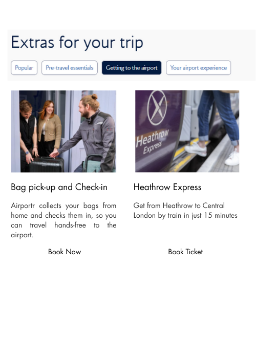 AirPortr integrates seamlessly into airline and airport environments without requiring large -scale system replacement or prolonged implementation cycles. A plug-and-play merchandising layer mapped to your existing booking, servicing and day-of-travel journeys to maximise conversion.